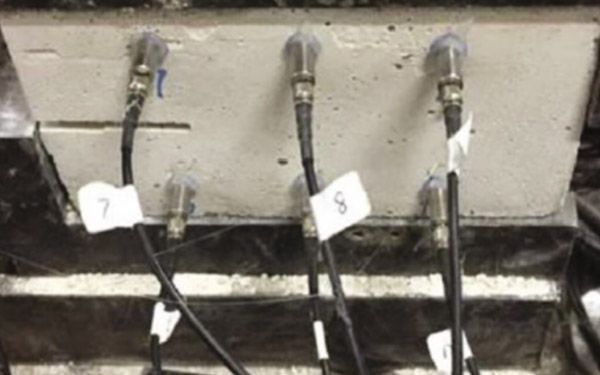 尺寸为200x100x100mm的混凝土试样,试样上有不同长度的预制裂纹,预制裂纹宽度4mm。在剪切试验过程中,利用声发射技术对缺陷进行信号定位,从而判断混凝土内部的损伤过程。不同预制裂纹长度的试样,声发射定位结果与实际破坏模式非常吻合,对试样的定位过程很好的反映里试样的实际破裂过程,而且准确的对试样裂纹的初始、扩展和贯通过程进行的反演。