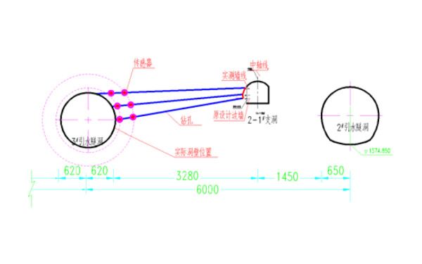 通过辅助洞往正在正在开挖的隧洞方向打孔布置声发射传感器,通过声发射数据了解引水隧洞横断面的应力调整过程中微裂纹发生的位置的范围,确定引水隧洞TBM掘进过程中引起洞周妍体应力松弛的深度及时间。