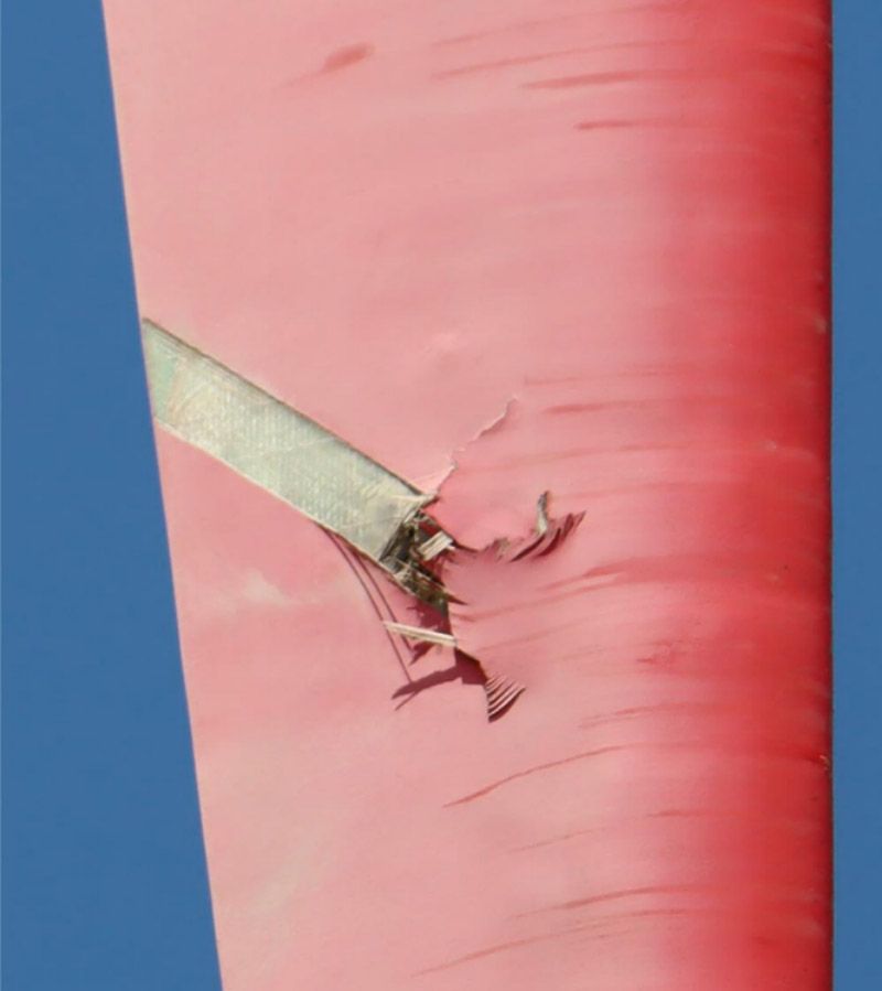 · 突发瞬态大动能事件捕捉与分析。声发射的硬件系统时刻都在戒备状态,可以捕捉到任意时刻在千分之一秒发生而又瞬间消失的事件。对于叶片来说,闪电雷劈,飞鸟撞击,脱落的冰块或外来硬物的撞击,叶片结构出现重大问题前的前期破损信号等都属于瞬态大动能事件。对于叶片监测来说,对瞬态大动能事件的监测远比叶片出现表面损伤的监测更为重要,因为这些大动能事件有可能导致叶片产生结构性的损伤而不仅仅是表面的损伤。结构性损伤是导致风机出现灾难事故的根本原因。