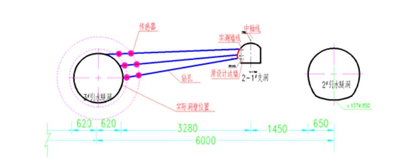 通过辅助洞往正在正在开挖的隧洞方向打孔布置声发射传感器,通过声发射数据了解引水隧洞横断面的应力调整过程中微裂纹发生的位置的范围,确定引水隧洞TBM掘进过程中引起洞周妍体应力松弛的深度及时间。