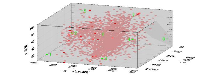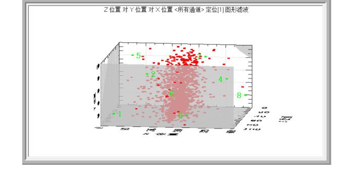 图3是整个加载过程的三维定位图,由于前期加载,有压头和试样接触的信号、试样内的压密等干扰信号,定位显得略微有些杂乱。通过时间滤波,只显示1000-1200秒的数据,如图4所示.试样最终损坏如图5所示