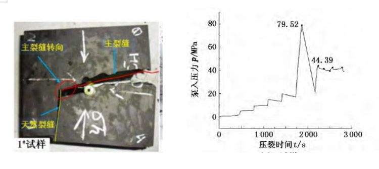 结合现场测试数据,采用相似准则模拟不同深度地层的压裂实验,3 块岩样的室内水力压裂实验参数见表 2,采用模拟大排量 ( 0. 326 mL / s) 压裂岩石至破裂,水力压裂实验采 用的压裂液是现场所用的滑溜水压裂液体系,包括降阻剂、破胶剂、杀菌剂和防水锁剂,其中添加少量示踪剂。