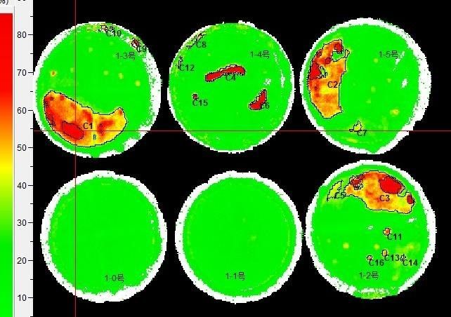 曲轴连杆衬套 | 曲轴连杆衬套检测图,图中红色代表构件内部缺陷及位置和大小 |