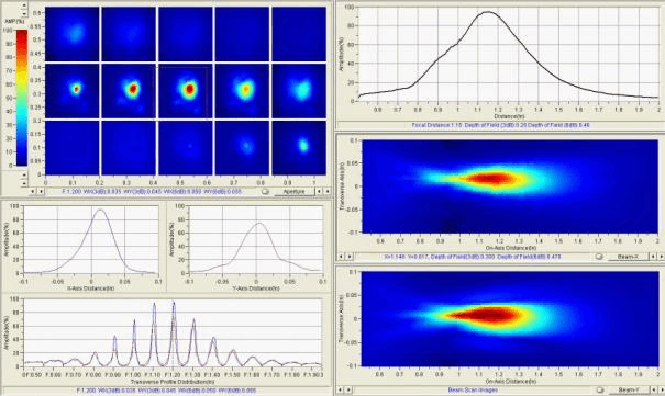 可对超声传感器的声场、声速柱面、频率分布、聚焦探头的焦点、焦距等参数进定量评估与分析。