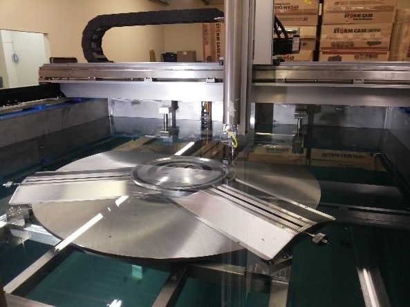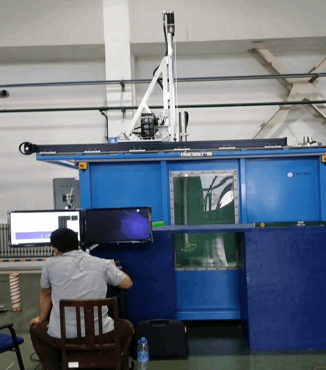 自动提升盘环件超声C扫描检测系统是一套专门针对盘环件、涡轴发动机、涡轮外环组件、动力涡轮外环组件、进气导向片组件等零组件裂纹的自动扫查系统。系统可实现X、Y、Z、T、A、B六轴联动自动扫查、实时显示扫查过程中的图像,并获取超声和扫描数据。其中转台可自动升降,方便工件装卸。